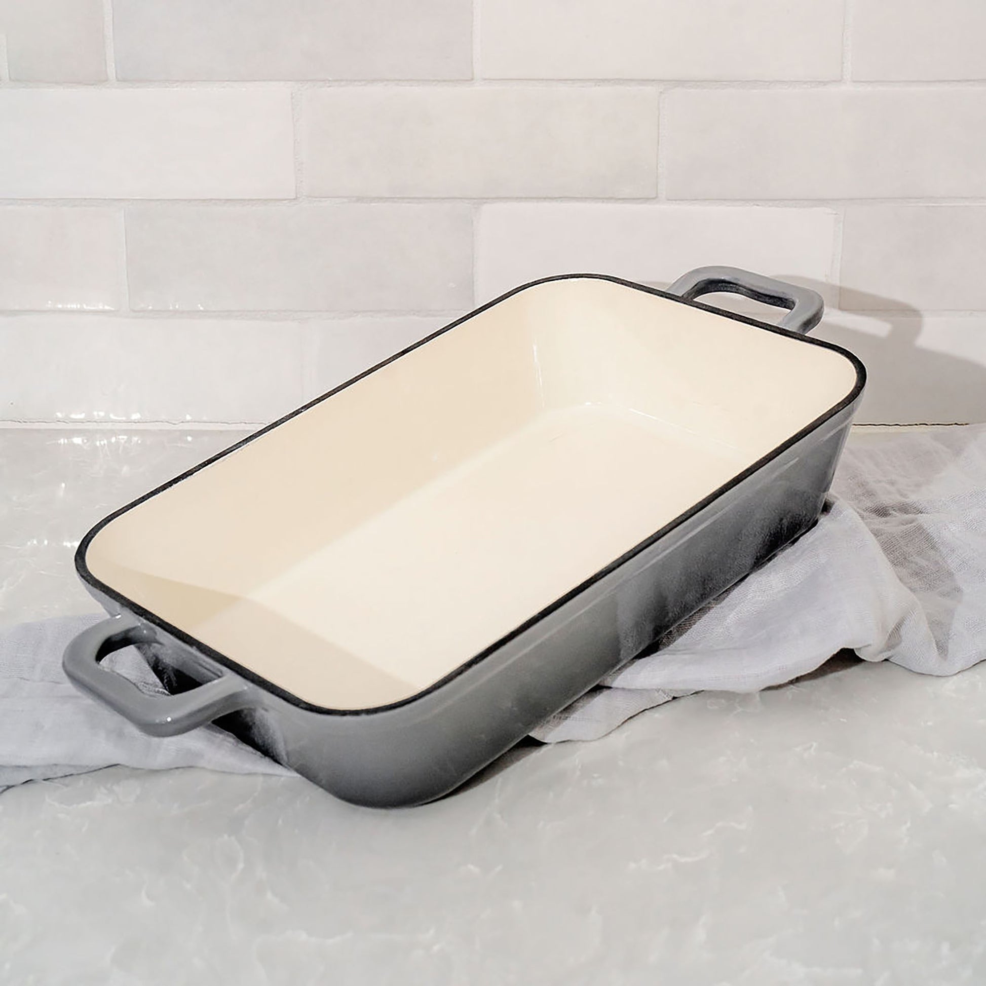 Cast iron cookware is all one piece, meaning the handles are cast in the same mold and connected seamlessly to the rest of the pan. Because of that, the handles are likely to be very hot during and after cooking. Always use pot holders or oven mitts when handling enameled cast iron pots and pans.